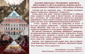 Вітання до 107-ої річниці заснування Кам’янець-Подільського національного університету імені Івана Огієнка